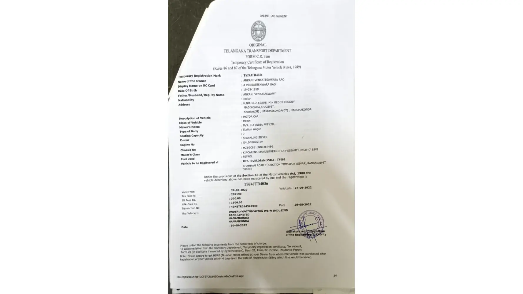 I A Venakteswara Rao Buy kia carnes on 29.08.2022 at wangal malik motors . after 2 week onwards my car got problem, taken to service center they are saying sensor problem update not received from kia , they are saying after sensor update we call u , last month called me taken vehicle to showroom.. up to now my car not received from last 1 month 15days..no response from showroom still now..
