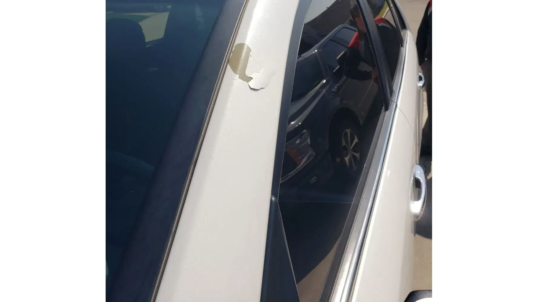 March 30,2022 noticed paint peeling from left driver side post.