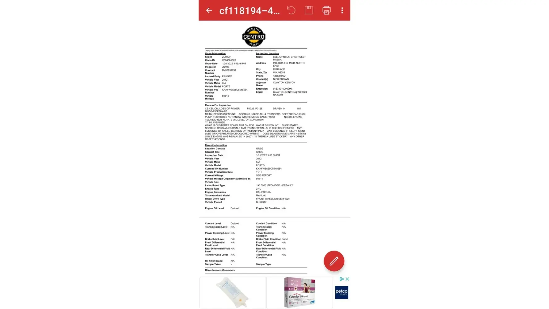 She told me I could send all of the documents I had to an automated email address. I sent over 70 documents. It has been almost 2 weeks and I have reached out to her daily to know avail. After spending 4 hours on hold today with Kia trying to get her supervisors number, she called. She was denying my request again and before she could provide me with an explanation, the call dropped and she hasn't tried once to call back or answered a single phone call from me. My extended warranty company sent me the independent report from their adjuster from 1/31/22. Greg told the adjuster several times that engine number 2 and 3, were covered by kia because they qualified under SC200 (fire Engine recalll)