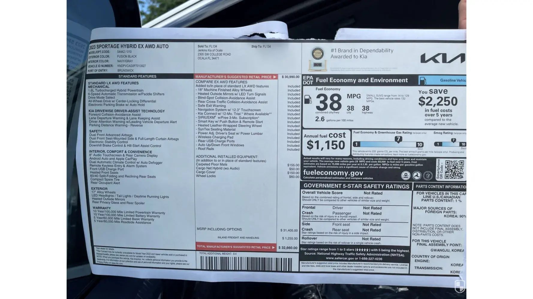 On May 7th 2022 I visited Kia of Ocala. I was in need of a vehicle but wanted to be sure I was making the right decision and buying something I plan to keep for years to come. I test drove a new Kia Sportage Hybrid. The vin ends in 7013927. The sticker price said $32,660.00. I loved the vehicle! I knew the MSRP sticker didn't have the markup yet and I knew it would be a few thousand dollars more with taxes and such. I wanted to talk to someone to work the numbers and see where my payments and 5k down payment would get me with a 786 credit score with no trade in. When I went inside, my sales guy told me the dealer markup went from $32,000 up to $48,000! Are you kidding me!? That is before adding taxes and fees to it as well! How is that legal?
