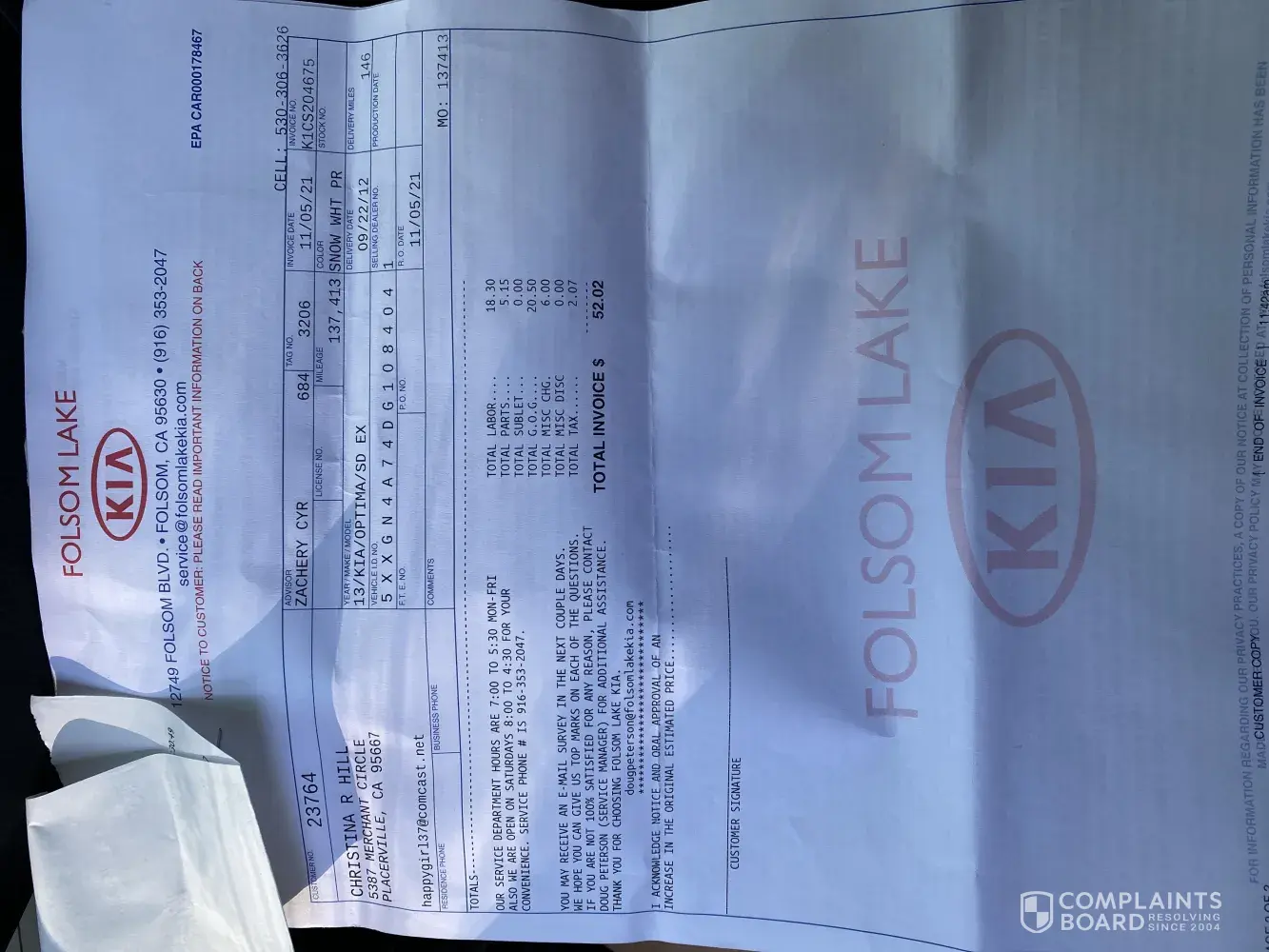 I bought my 2013 Kia Optima brand New from Folsom Lake Kia. This car cost me $32, 000. I paid this car off within six months. All of my family buys from this Kia dealer, and have bought several vehicles each. But our family will not be buying any more Kia cars because my car has had the paint peeling since the first year of me buying it. I have only had the maintenance done at the Kia dealer where I bought it and every time have asked Kia to fix the issue and they claim it's not their issue there's no recalls on it. But when I look it up online there's thousands of people with the same exact issue. The fact that Kia has not made this right, they are going to lose a ton of business. Because each of my family members my dad my two brothers my sister all on their own businesses and we're buying Kia‘s however will not be doing that any longer. We always recommended Kia to our clients and will not be doing that either. The paint started peeling from around the windows now it's on the fenders and the trunk it's looks horrible it should not be doing that. And Kia should have made this right, if they had we would still buy cars from there.