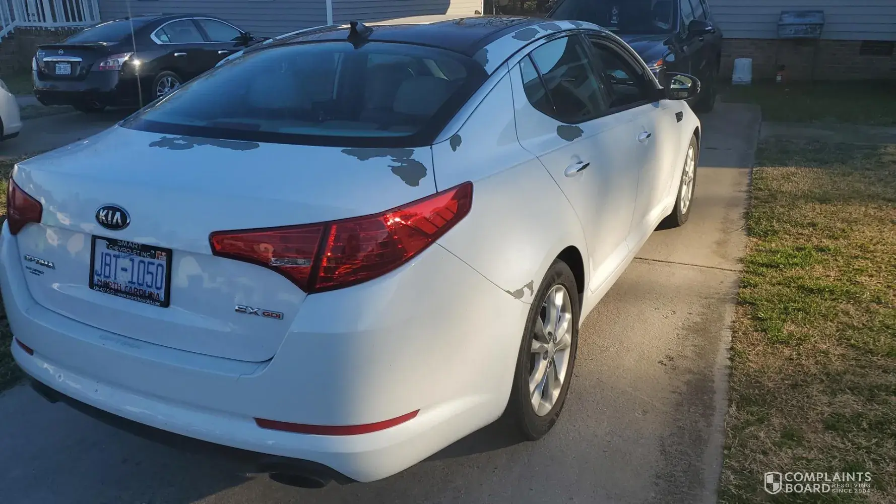 I have taken my car to a Kia dealer every 5, 000 miles to have it's oil changed and when I went in last time I mentioned the paint job to the service manager and he said "it's always the white vehicles we see this on". That right there tells me there is a huge problem. While I was there I saw a white Kia Sorento and another white Optima that was also peeling.
