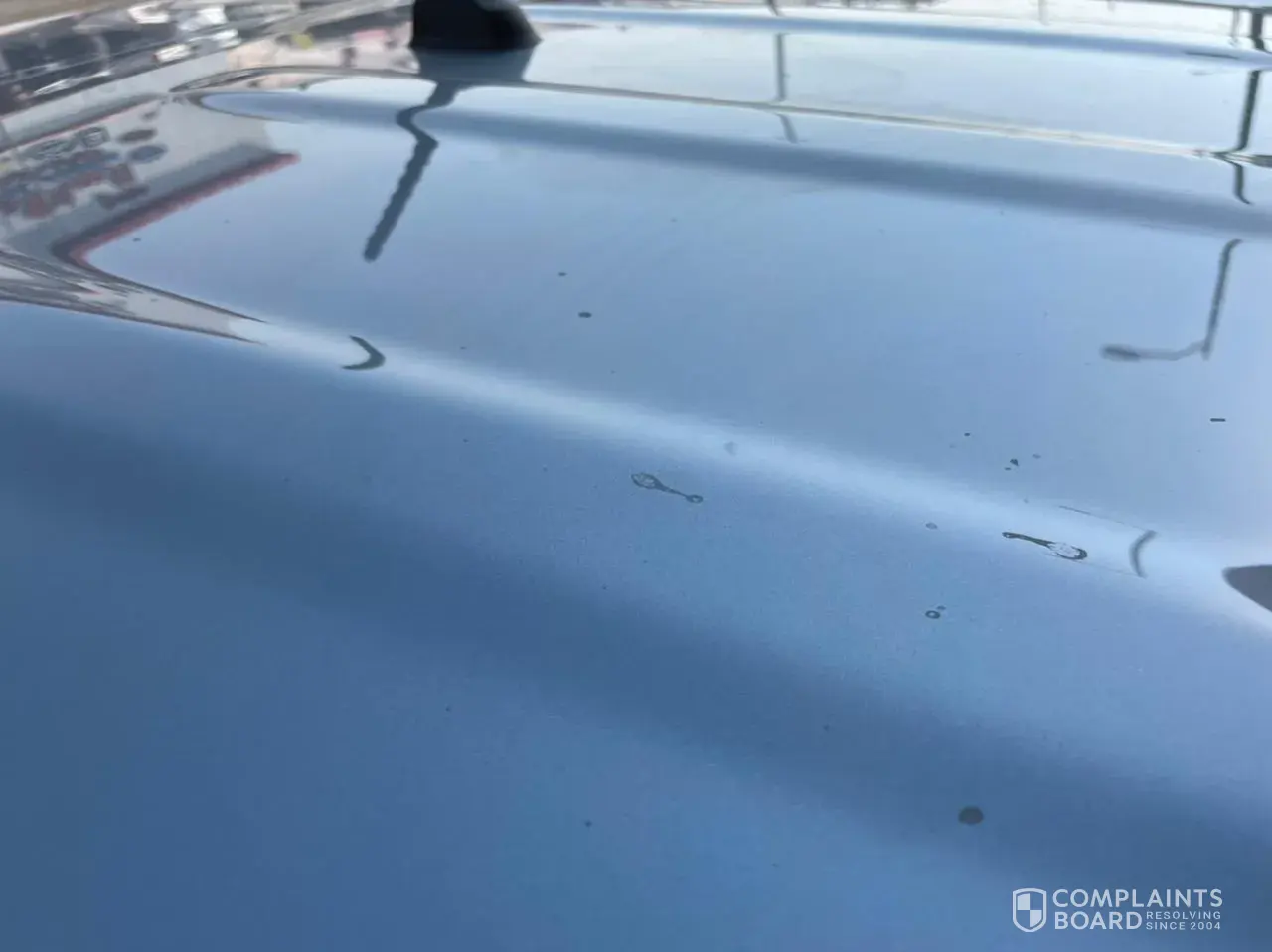 They said it was bird droppings, and after said that the car was exposed to chemicals, and said it was exposed to cement materials, and then I went to the main branch in Dammam and to inspect the car, the quality official, and in less than a minute and with the naked eye,