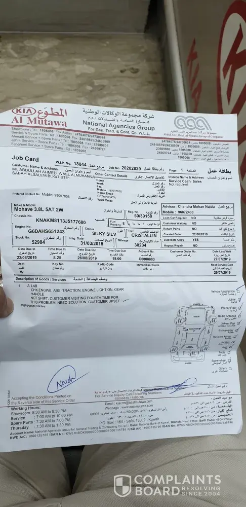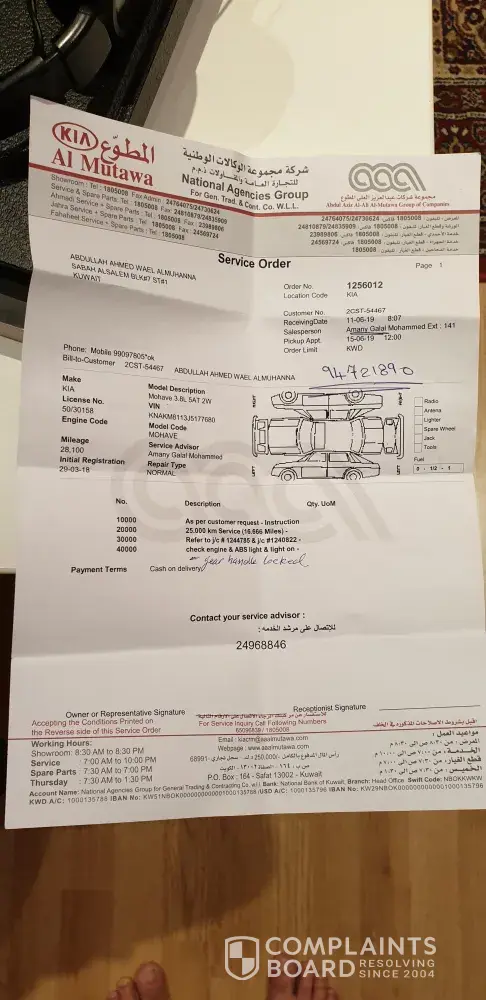 National Agencies Group (Kia distributer in Kuwait) failed to deal with the issue seriously, leave alone to solve it.