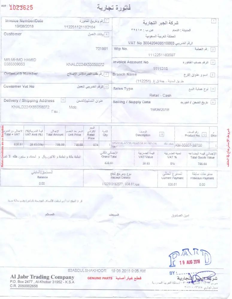 I am complaining about spare part department (aljabr) jeddah, saudi arabia