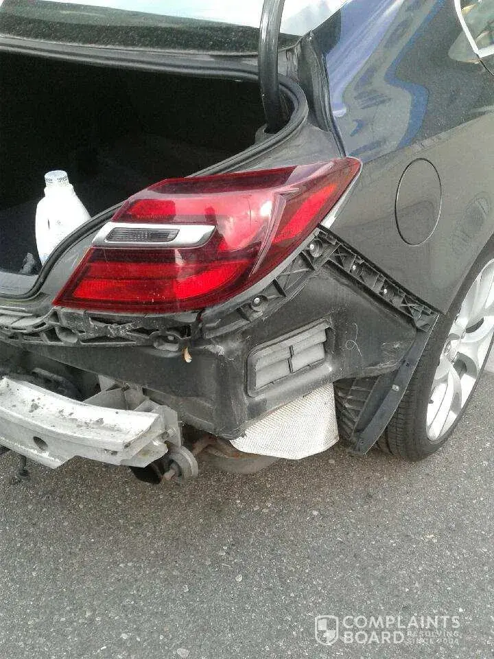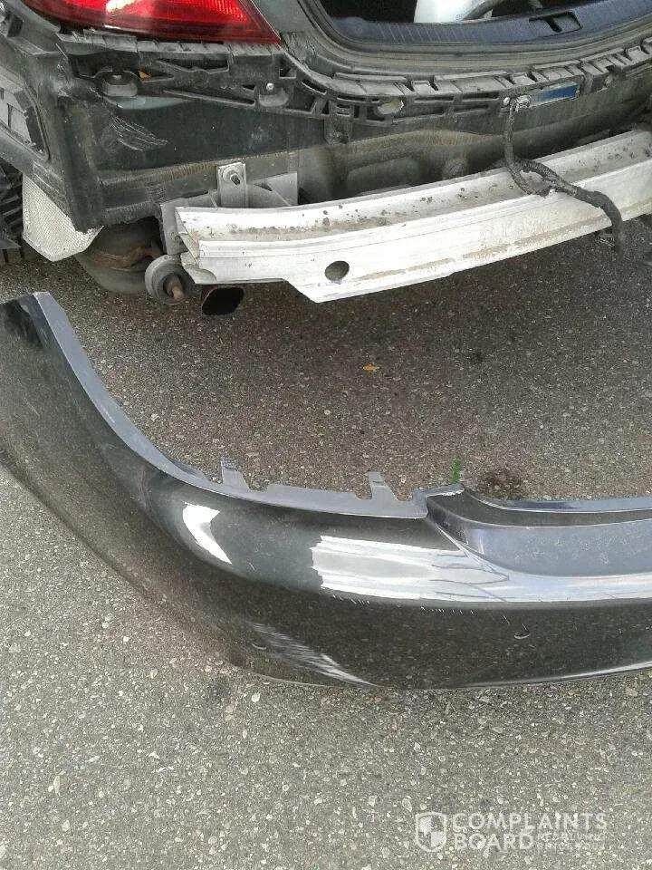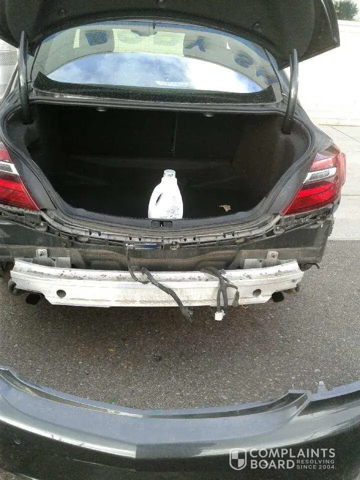 On September 22, 2017 I took my Buick Regal GS in, that I just purchased in March 2017 from KIA Canton, to get an oil change. During my oil change I was told that my rear driver's side headlight was out and did I want to get it repaired. I agreed, and after 2hrs of waiting Steve Szababos came out to tell me that the tried a bulb and it didn't work si they looked at some wiring to try to find they problem and I need a bulb something like a UV light that they have to order. Later on that day while parking I noticed my sensors and rear view camera was not working. The screen for the camera was black. On Sunday, September 24, 2017, first time I got on the freeway since my oil change my bumper flew off right there on the freeway. I had to get Livonia police Dept. to retrieve my bumper from the middle of the freeway. I contacted KIA Canton Monday and on Tuesday they had me take my vehicle to Chevy dealership in Southgate. After having my vehicle for 2 weeks they are telling me that my insurance is going to have to pay for it but they will help me work out the deductible. Steve Szababos even said my bumper came off where the light they was going to fix first and than it pulled the rest of the bumper off, but they are not taking responsibility for it. I do have pictures and I have already contacted Michigan auto complaints. I just want them to fix my bumper that they are responsible for coming off.