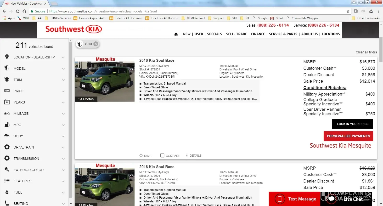 I visited Southwest KIA in Mesquite Texas and test drove the 2016 KIA Soul having VIN# KNDJN2A22G7873851. My salesman was Omar. After verifying my credit, etc. Omar came back from his manager's office and advised me that the MSRP price of the vehicle was about 5000$ more than the advertized price due to "add ons" that are not mentioned in the ad (see attached image) on the Southwest KIA website (see https://www.southwestkia.com/inventory/new-vehicles/vehicle/KNDJN2A22G7873851/2016-Kia-Soul-Mesquite-TX) . To me this was false advertizing and a very poor customer experience.