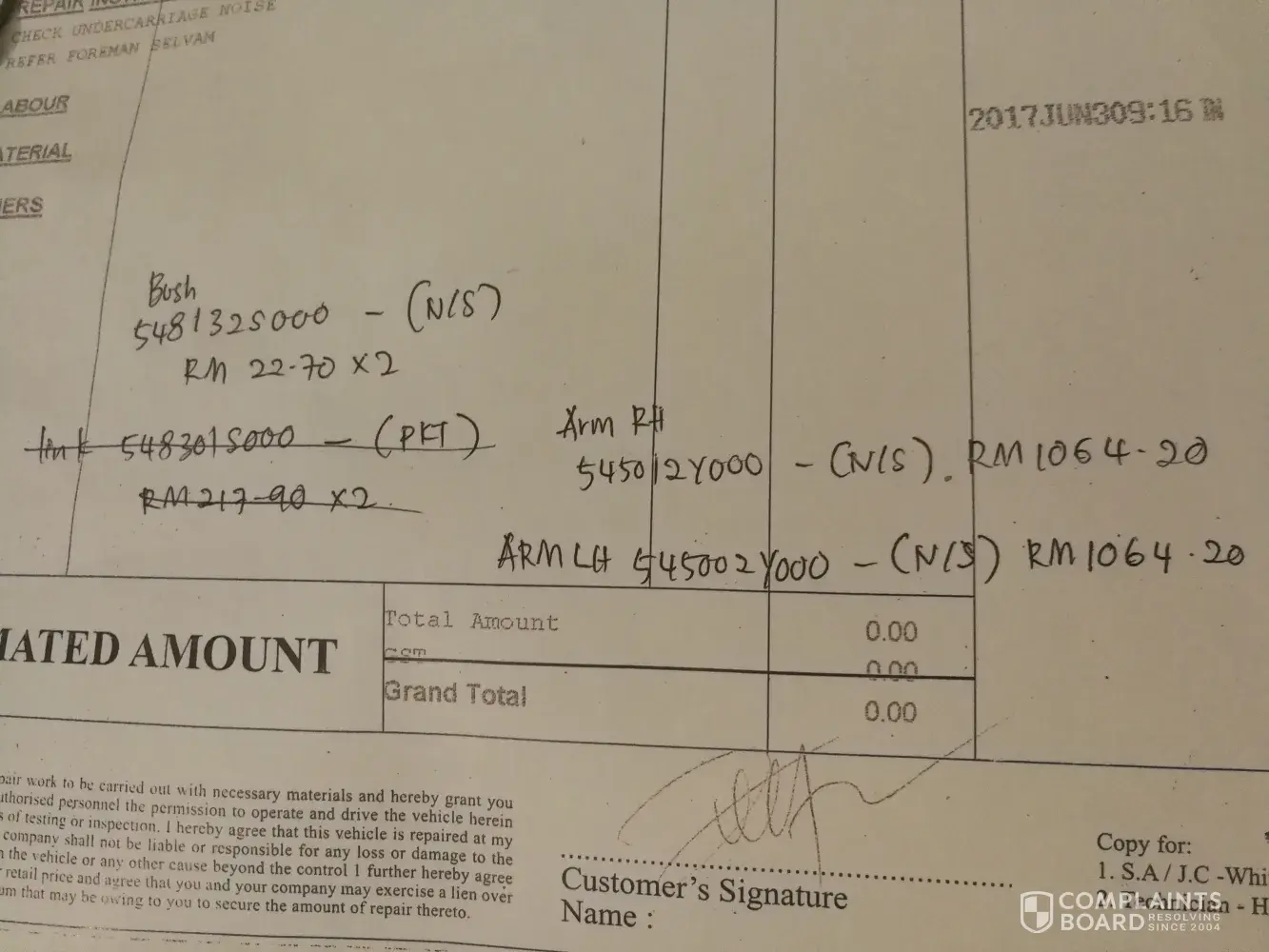 On 30 June 2017, I brought my 2011 kia Sportage for checking at kia official service center at Red Cube petaling Jaya for "kruk kruk" knocking sounds coming from front driver Tyre side. The service person informed that bush needs to be replaced. He further given me a quotation claiming both lower arms have cracked and needs to be replaced. As I was cheated...