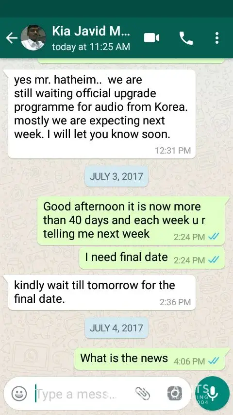 I was talking to maintenance unofficially. but I make official complain on [protected] and i talked to the maintenance every week since then . and each week they tell me that they are waiting a programming from Korea the next week and they will contact me.