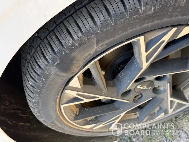 I purchased a new Kia K4 in February of 2025 at Boardman Ohio, Ken Ganley Kia. At 4000 miles all 4 tires bubbled. first one and then the other 3. I changed the first one, but when the other three bubbled I knew it was a manufacturing problem or perhaps they weren't installed correctly. I called Kia customer service and they sent me to Pireli Tires warranty dept. Pireli said it is covered under factory workmanship and materials. I called Ken Ganley Kia in Boardman, Ohio and spoke to a salesman, Joe, who informed me that he helped a customer send this form about a month ago because of a bubbled tire. But when I went to schedule with the service dept, they said they could not find a form for factory workmanship and that Imust have hit a pothole. They refused to do anything. I am considering contacting the attorney general but hoping you will help first. A pothole would not cause all the tires to bubble and the dealer would not even help at all. For safety reasons, I had to go buy new tires asap. I tried getting an appointment at the Kia dealer in Hermitage PA but they wouldn't take me till May 12. We are a family of Kia. My mother and grandfather have Kias. I need your help to have justice here. The dealer also did not submit the paperwork for th plate and I am driving with an expired temporary plate. If you look on the BBB site, there are similar complaints. I am enclosing some photos but I have kept all the tires and can send more photos if needed.
