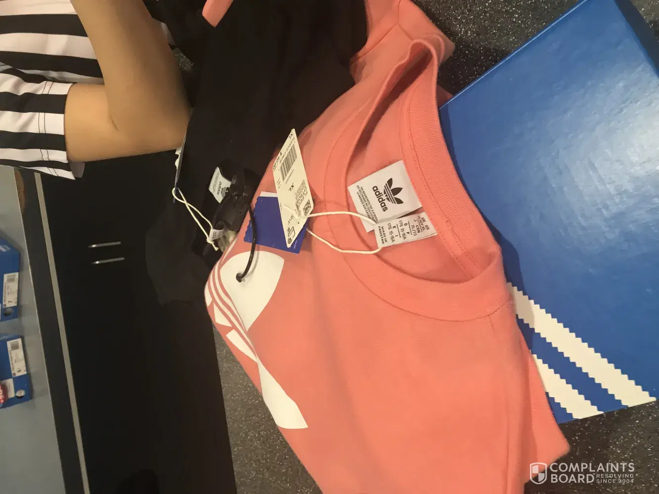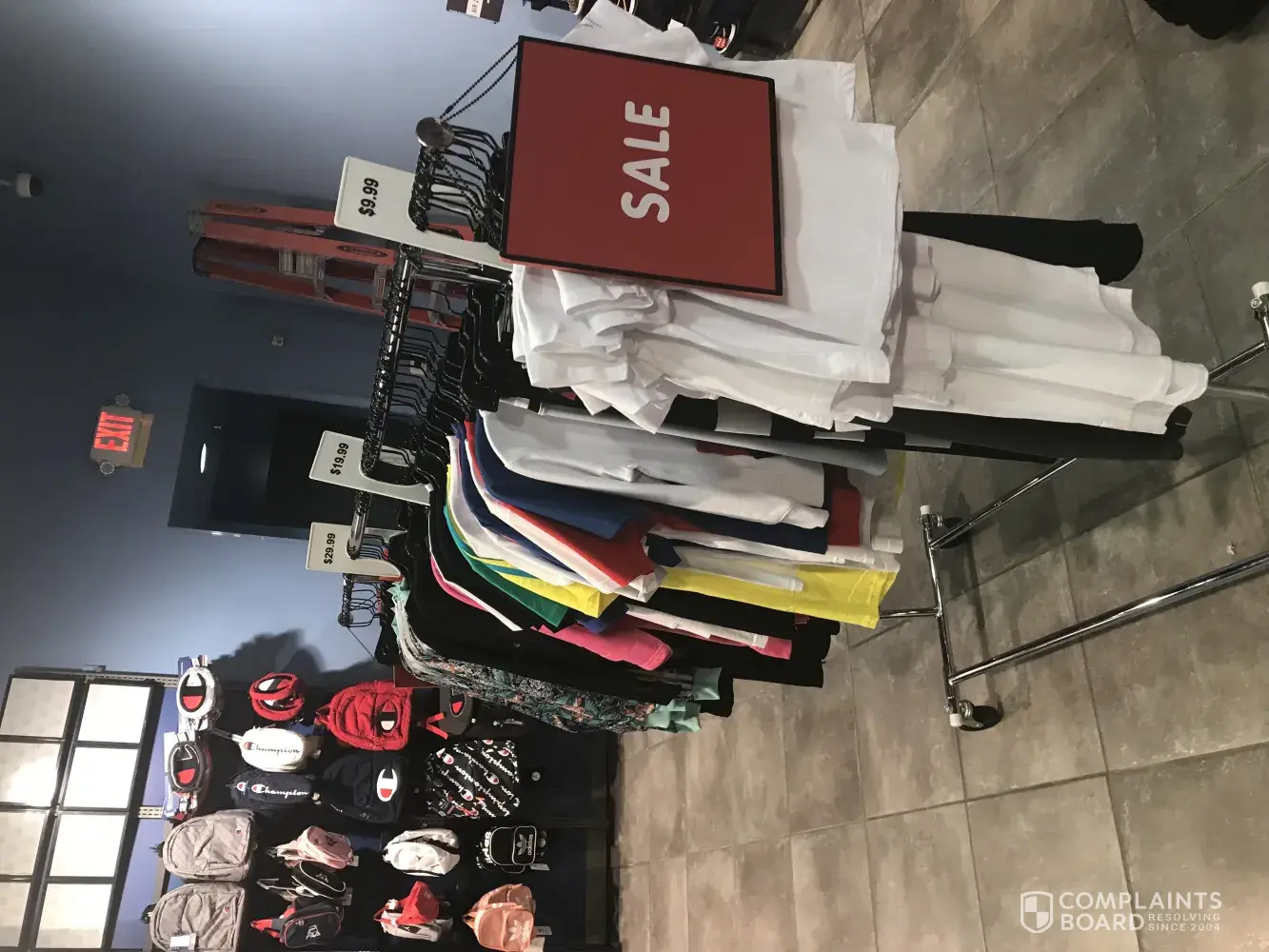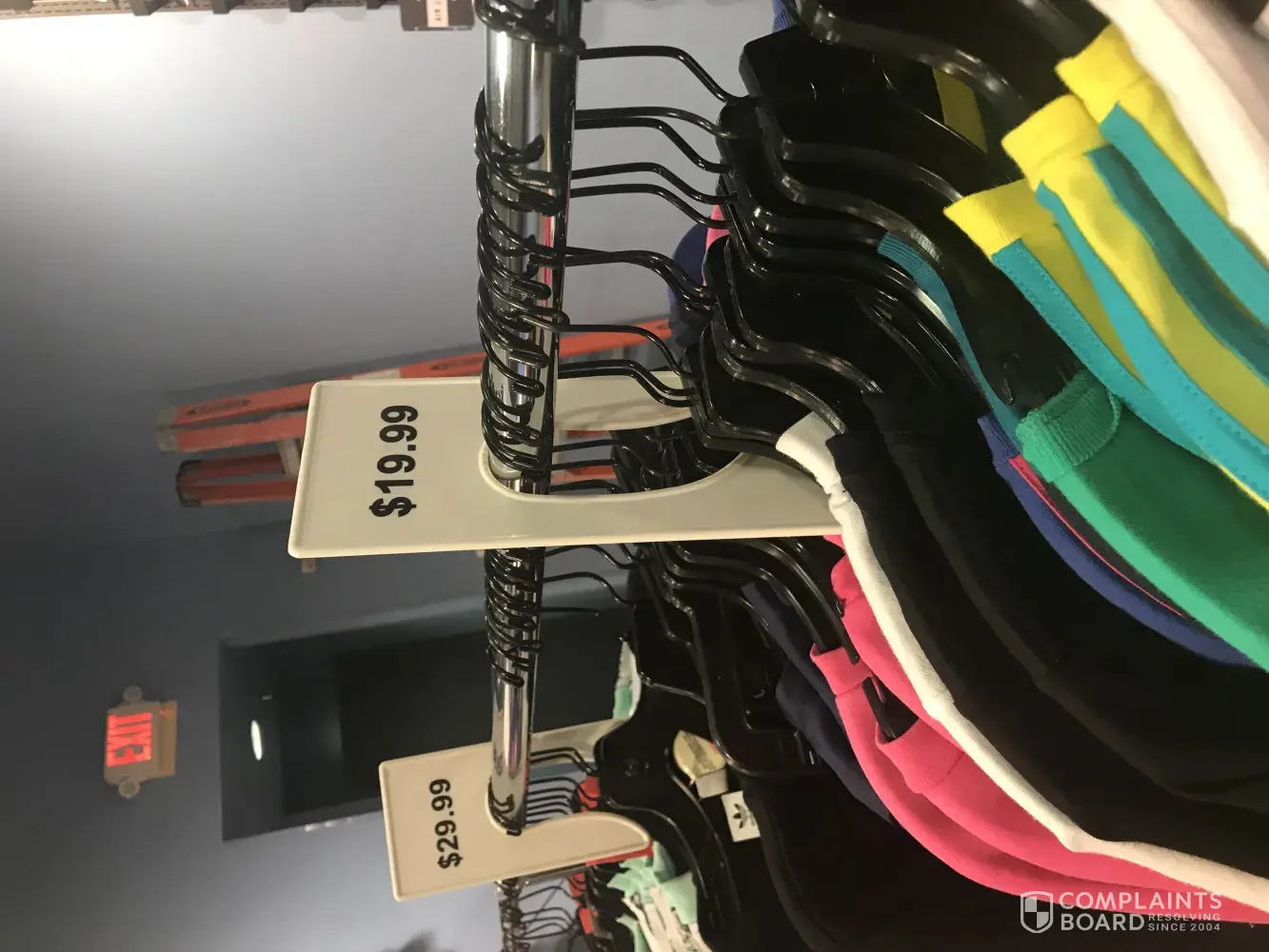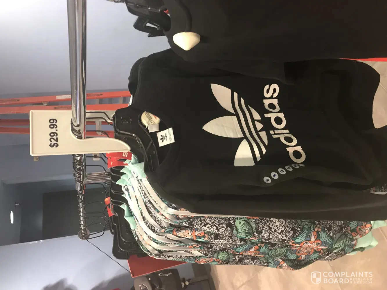 I enter the kids footlocker in Almeda mall looked around for a while notice some Addidas on the sale table for $30 the color pink.. look around some more notice a sale rack of sweaters and shirts with a big red sign on it says sale, and prices above the signs say $9.99, 19.99 and $29.99.. I matched the Addidas shoes up with a sweat shirt on that sale rack...