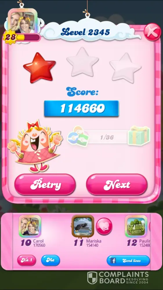I am on level 2345 i passed that level and it won't let me progress, you gave me 20 bars to retry this level again, I lost all that because the technical support said to delete and reinstall cc and face book, I've done this I've watched all of you tube videos in how to fix problem, I got a reference number and was told to apply this to technical support I have done this they have not responded, I've played the game for four years without a hitch, please fix this problem I'm furious now x