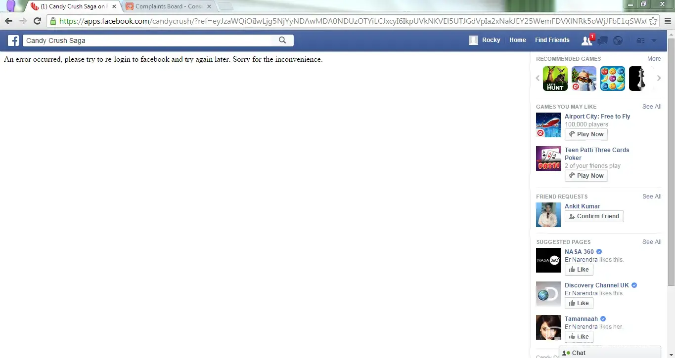 2-It shows massage as" An error occurred, please try to re-login to Facebook and try again later. Sorry for the inconvenience."