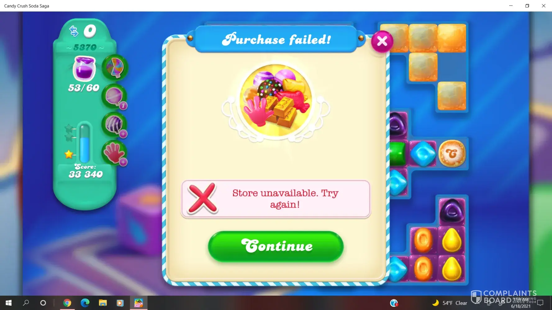 I play Candy Crush Soda Saga and got drawn in and started paying to get more moves. I tried to make a purchase and got a screen : "Purchase failed. Store unavailable. Try again." Not until I got a bank memeo that my bank account was low did I realize all 10 of $16.99 charges had gone through. There werealso other times it happened. I have requested a refund but was told Microsoft needs to refund my money. I cannot get in touch with any one from Microsoft to help get it resolved. Microsoft should be aware that King.com is not a reputable company. King.com knows that there is a problem with their game. This happened to me before and King.com investigated and gave me the game credit. It was not as much money as this. I want a refund.