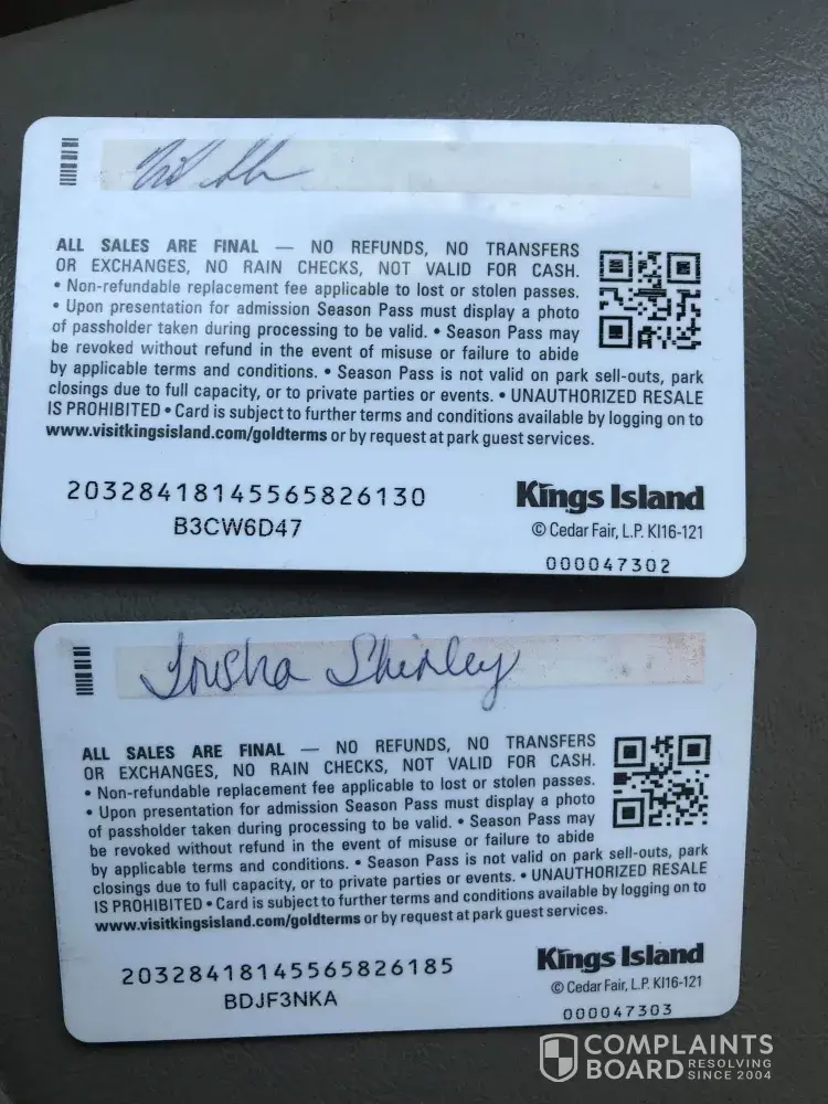 Please note that We have subscribed to Kings Island in 09/28/2021 and we got the five gold pass.