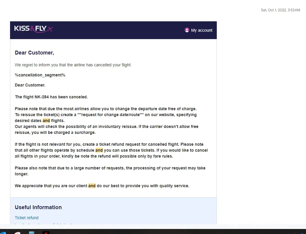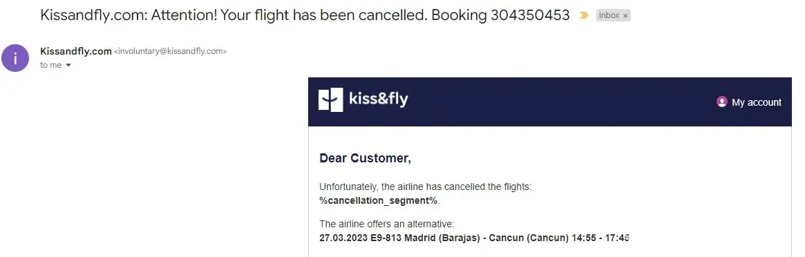 Preferred solution: A flight credit with the airline booked with KissandFly.
