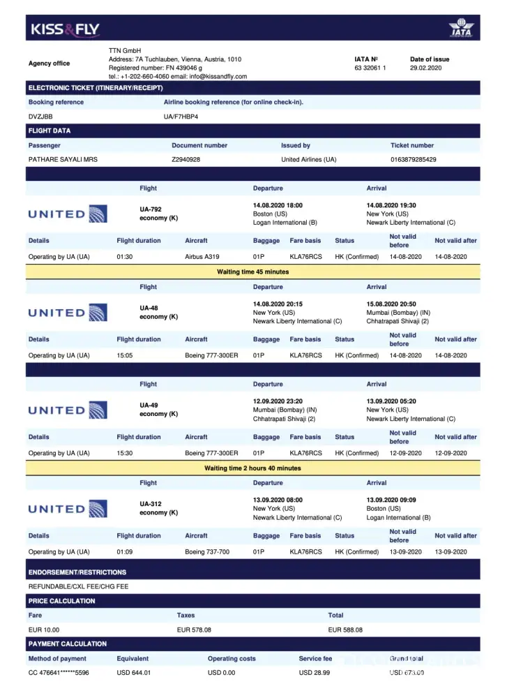 I have booked a flight ticket from Boston to Mumbai on 29.02.2020,