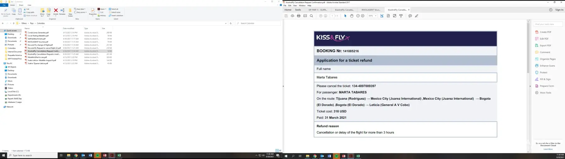 I bought a ticket to go from New Orleans to Pereira, CO. In addition, I bought the refund insurance.