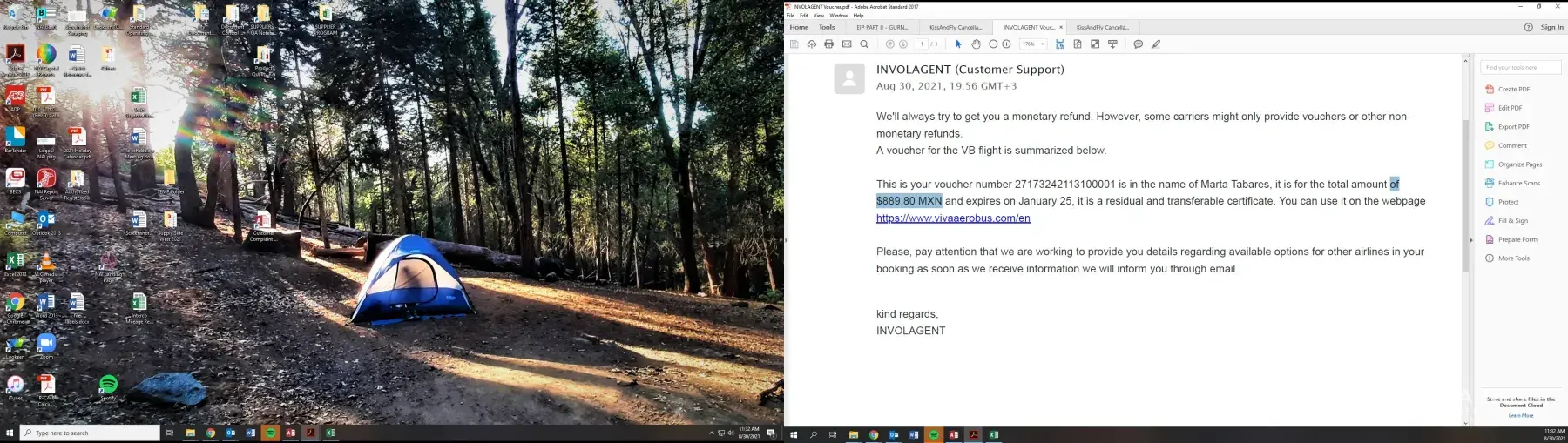 I received an e-mail on 08/30/21 from INVOLAGENT for a voucher of $889.80 MXN, which translates to $44, not only is way below the amount that they own me but it is not even real money.