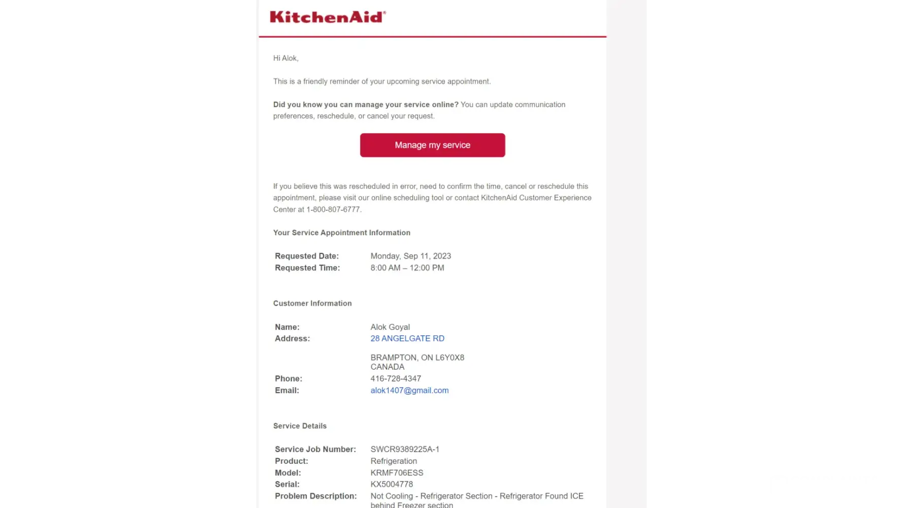 All of this could have been avoided had KitchenAid relayed which part needed fixing and the parts could have been ordered ahead of time. I was really frustrated because I felt like they didn't care about me as a customer. When I contacted customer service again after this happened, I was once again ignored. I was really upset because I felt like they didn't value my time or my business.
