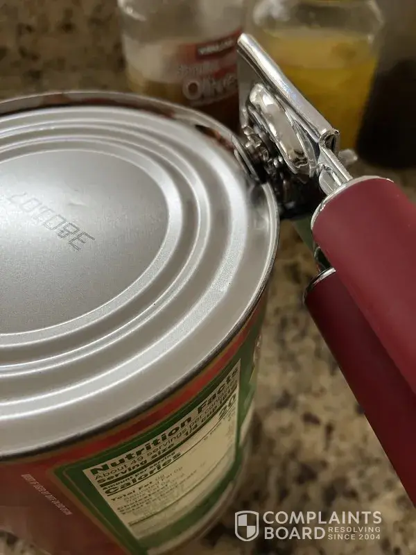 I purchased this manual can opener about two months ago to replace a rather old opener I had. While using this 'new' opener on a large tomato sauce can, the handle made a pop and now just spins around. I had to clamp a small ViceGrip pliers to the shaft to finish opening the can. As a forty plus years as a mechanical design engineer, I can see the small size splines on the shaft and the thin wall of the plastic handle are woefully undersized for this application. I am guessing this was made in China. If so, the original design might have been done in the USA and then sent abroad for manufacture, but was cut back to save a penny or two. Also I doubt any strength testing was done.