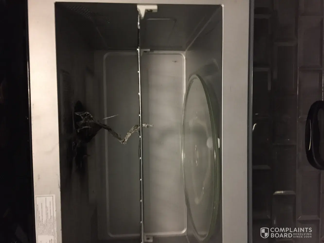 If you stand by your microwave product it should be repaced or costs replace photo of inside microwave ,top exploaded and fire