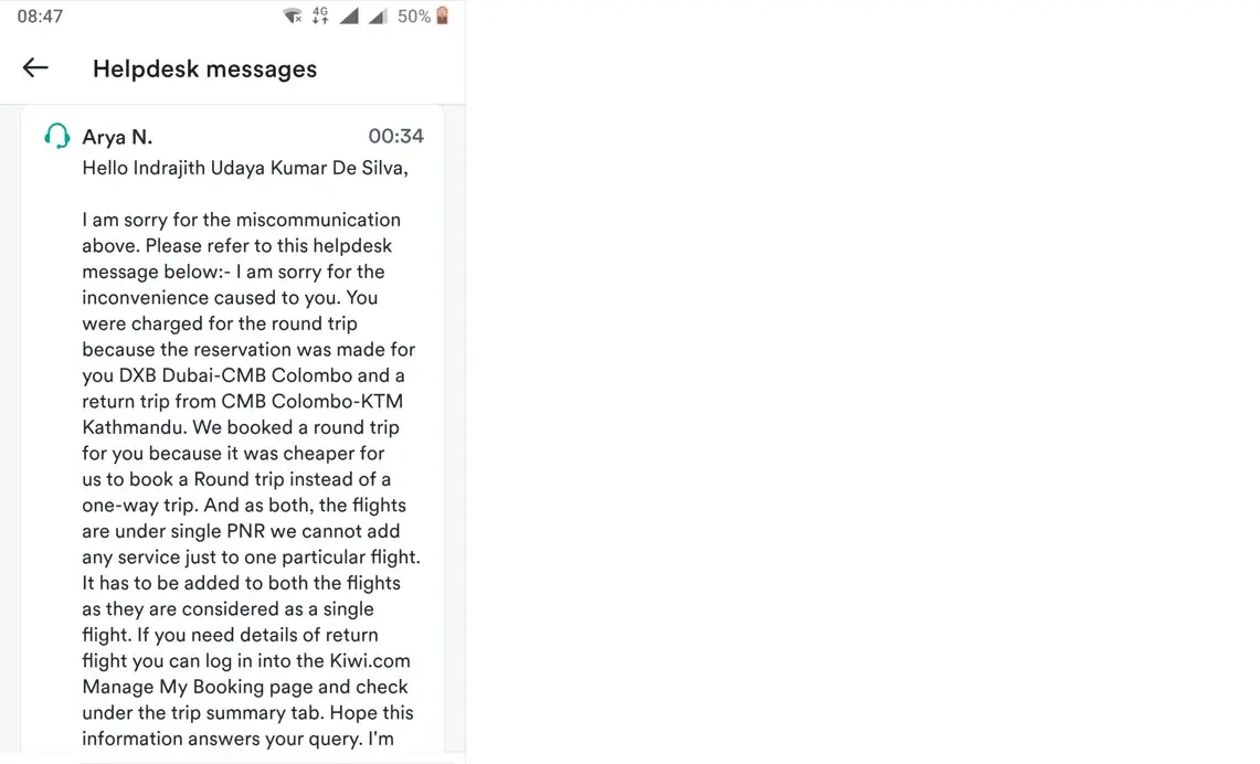 So since then, I’m trying to get my vouchers back, I’m being put on hold and I’ve been told that someone the case has been sent to another department and that someone will comeback to me. However, after getting a little confused when I saw on the topic of this conversation with Kiwi that the case was solved so I’ve kindly expressed my confusion and asked about the delay and where I should expect someone to comeback to me. But then, I received a message telling that nobody was coming back to me since the case was solved.