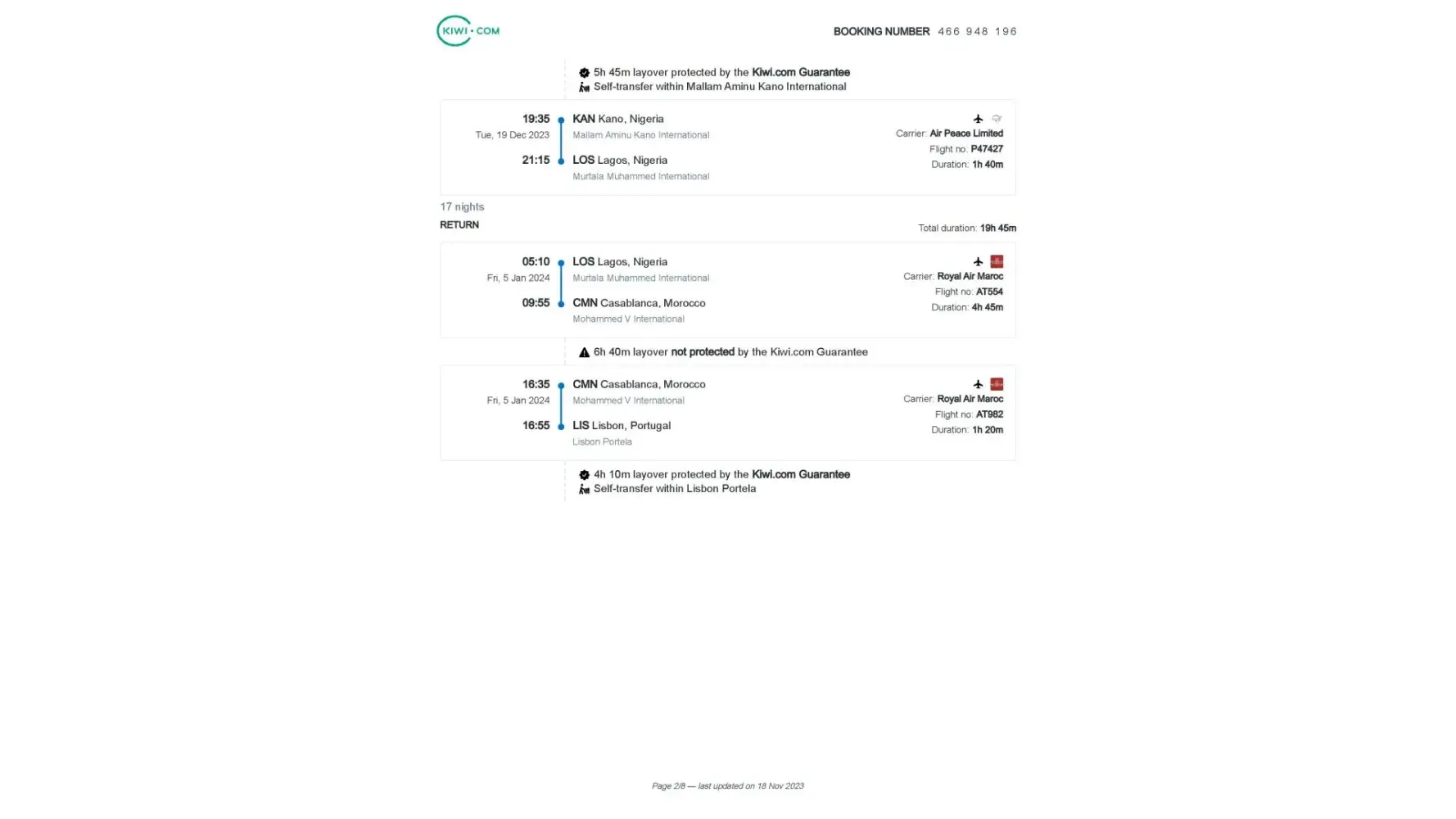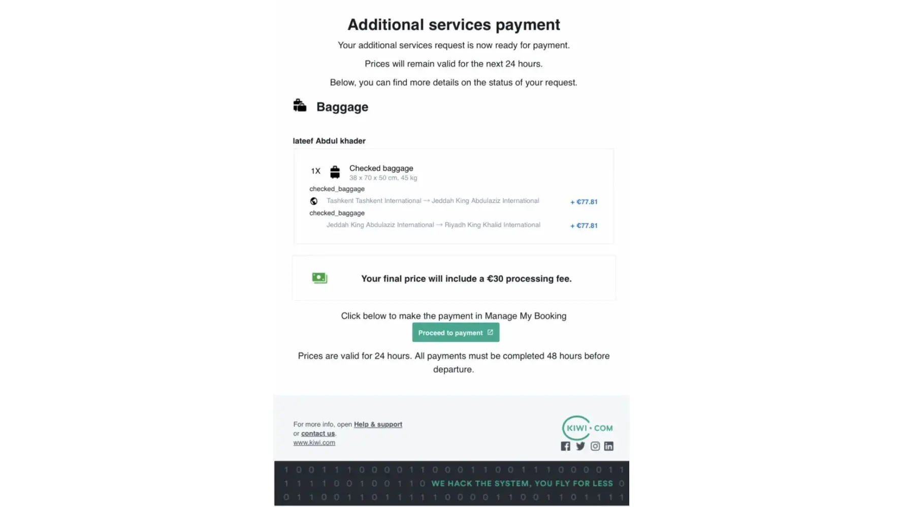 Step 2: kiwi.com first confirms the booking, and then cancels and offers other options (2 times more expensive) or a refund