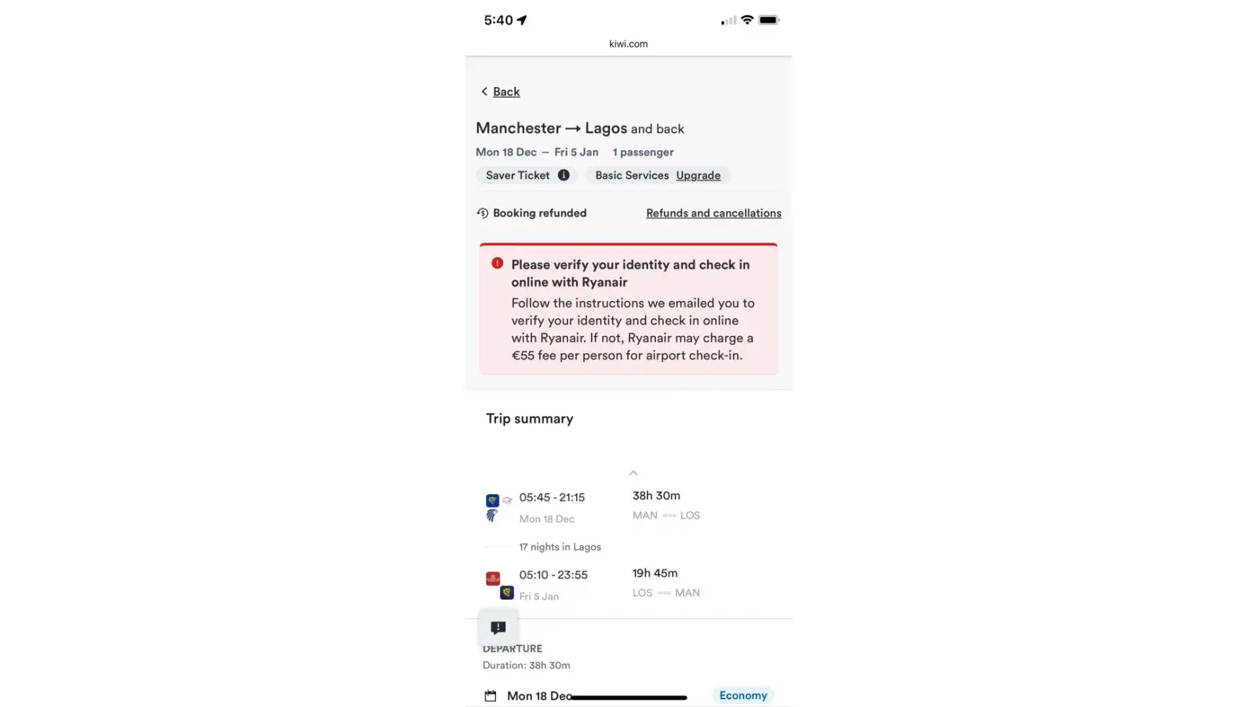 They ended the call by saying, "We cannot and will not help any further, as we have done everything we can," and here we are, with a partial refund for a flight we never boarded or given the chance to board and $1000 less in our account because we had to source replacement flights on Christmas Eve! It was a really frustrating experience, and we wouldn't recommend Kiwi.com to anyone.
