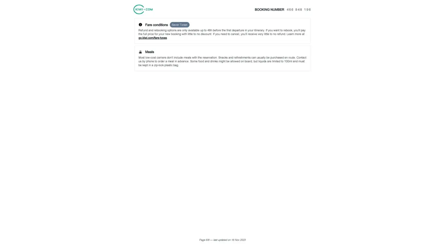 Just to emphasize, Kiwi.com overcharges. Its base fare appears low, but they charge well over an additional $120 for a carryon, $26 for seat selection of any kind, and an additoal $100 for flight protection. This far exceeds what other travel websites charge. Its just a price-gouging operation that takes advantage of consumers.