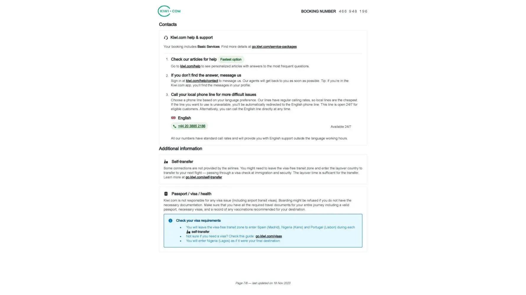 These people are scammers. They will find a way to take your money from you. They will not fix minors problems and actually do things to cause problems with your flight booking to take your money. Call your bank for a chargeback. They lied yo me and told me the airline cancelled my flight. I called the carrier and they said that kiwi.com cancelled the ticket. Now they refuse to tell me if I am getting a refund.