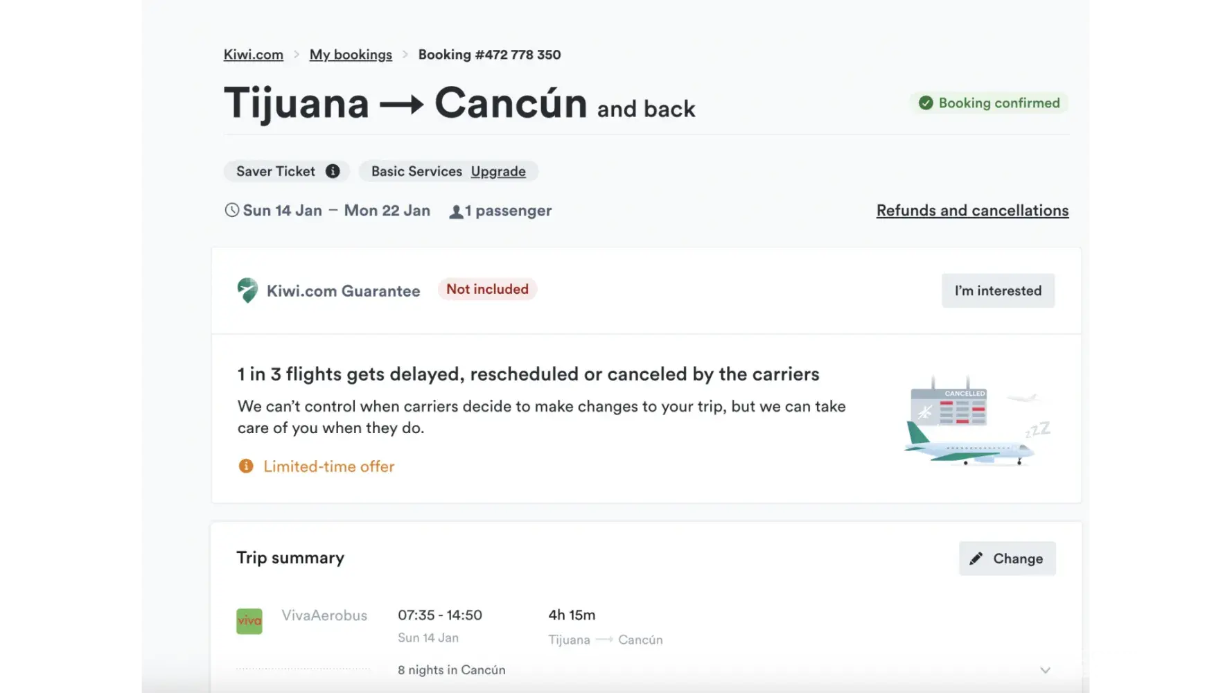 Regret booking via Kiwi