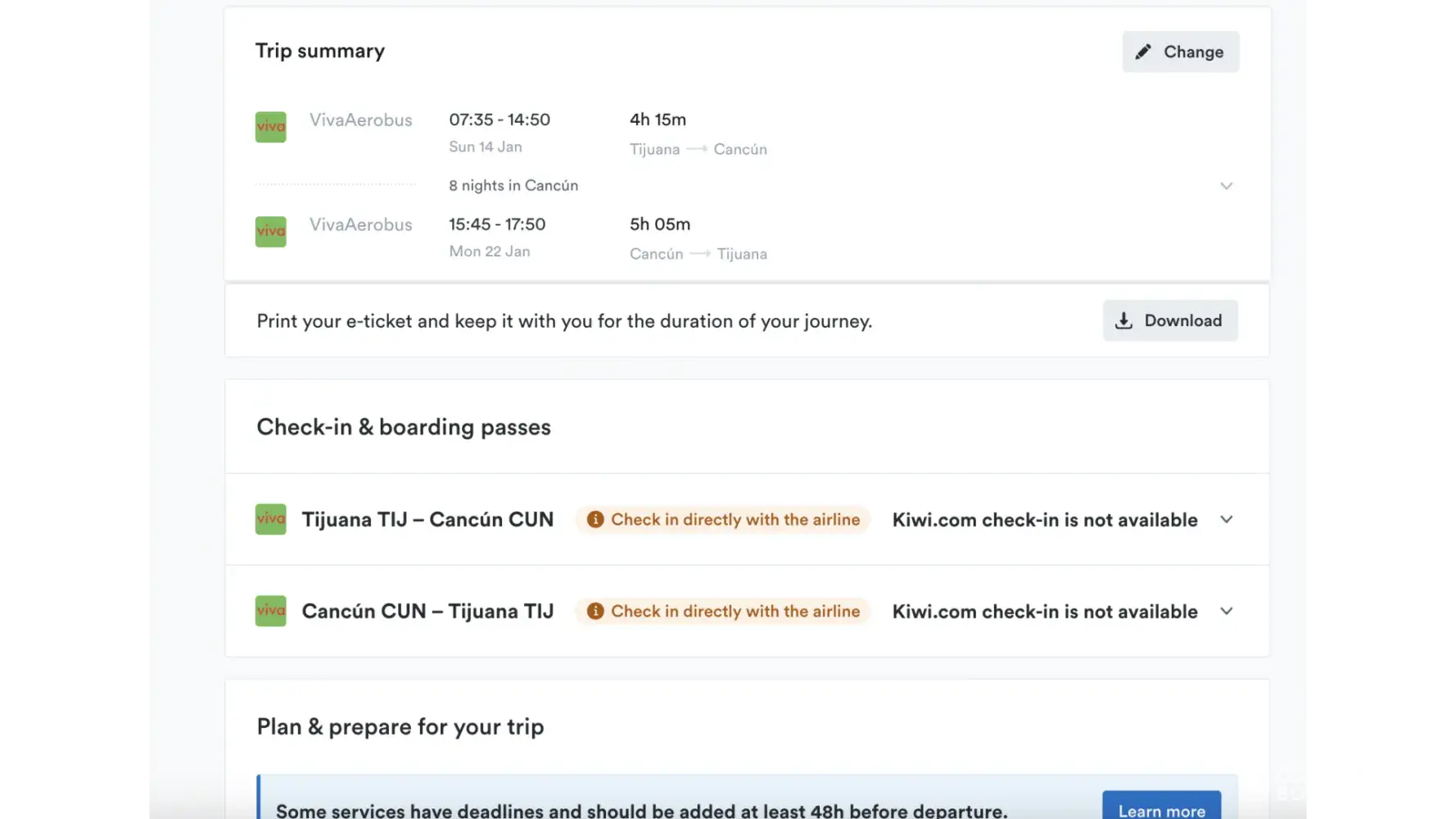 I deeply regret booking with Kiwi. I scheduled a morning flight to Barcelona to catch my booked tourist liner in the evening. However, the airline changed the schedule, so that my flight arrives after the liner departures. Despite this significant inconvenience, Kiwi accepted the schedule change without notifying me and refused to reschedule my flight. I could have easily resolved this issue directly with the airline. I see no value in using Kiwi and strongly advise booking directly with the company instead.