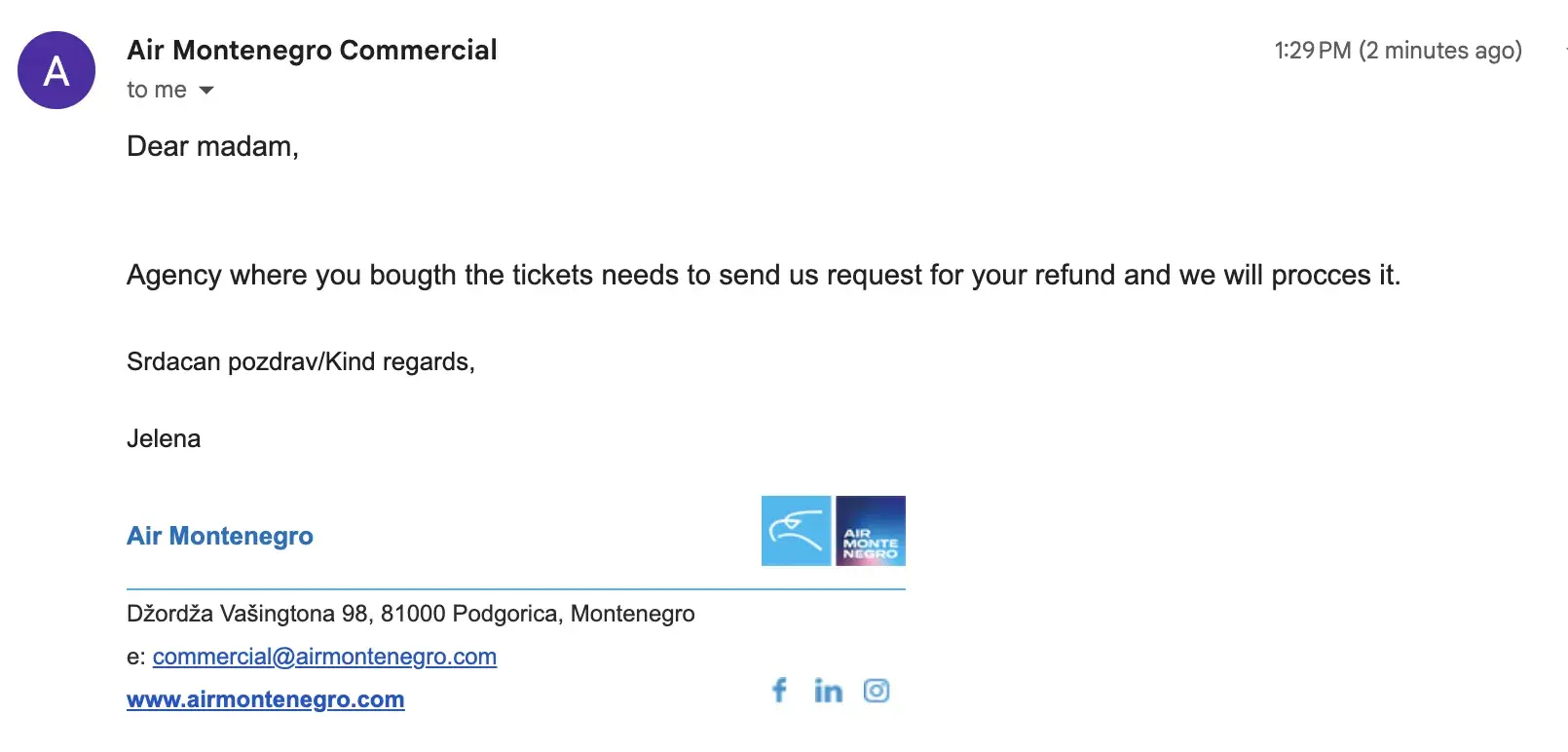 Dear Sir/Madam, I am writing to bring to your attention an issue I am facing with Kiwi.com regarding a refund for a flight booked with Air Montenegro. Despite the airline agreeing to issue a refund, Kiwi.com has been complicating the process and sending inconsistent, unclear responses, making it extremely difficult to resolve the matter. Here is a brief...