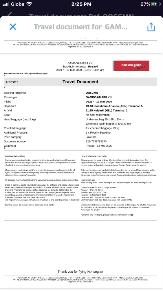 I have booked a one-way flight to London from Manila last May 11, 2020 using Jetstar and LOT airlines with connecting flights via Singapore and Poland respectively.