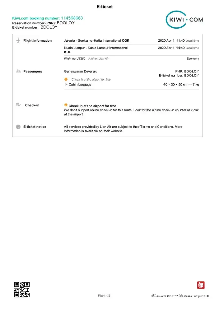 One of the worst customer service I have experienced in my life. I understand that my 1 flight (Booking ID: [protected]) on April 1, 2020 from CGK to KUL was cancelled and caused me to miss my connecting flight. I can understand this due to the pandemic like other cancelled flights but these four issues below really takes the cake: