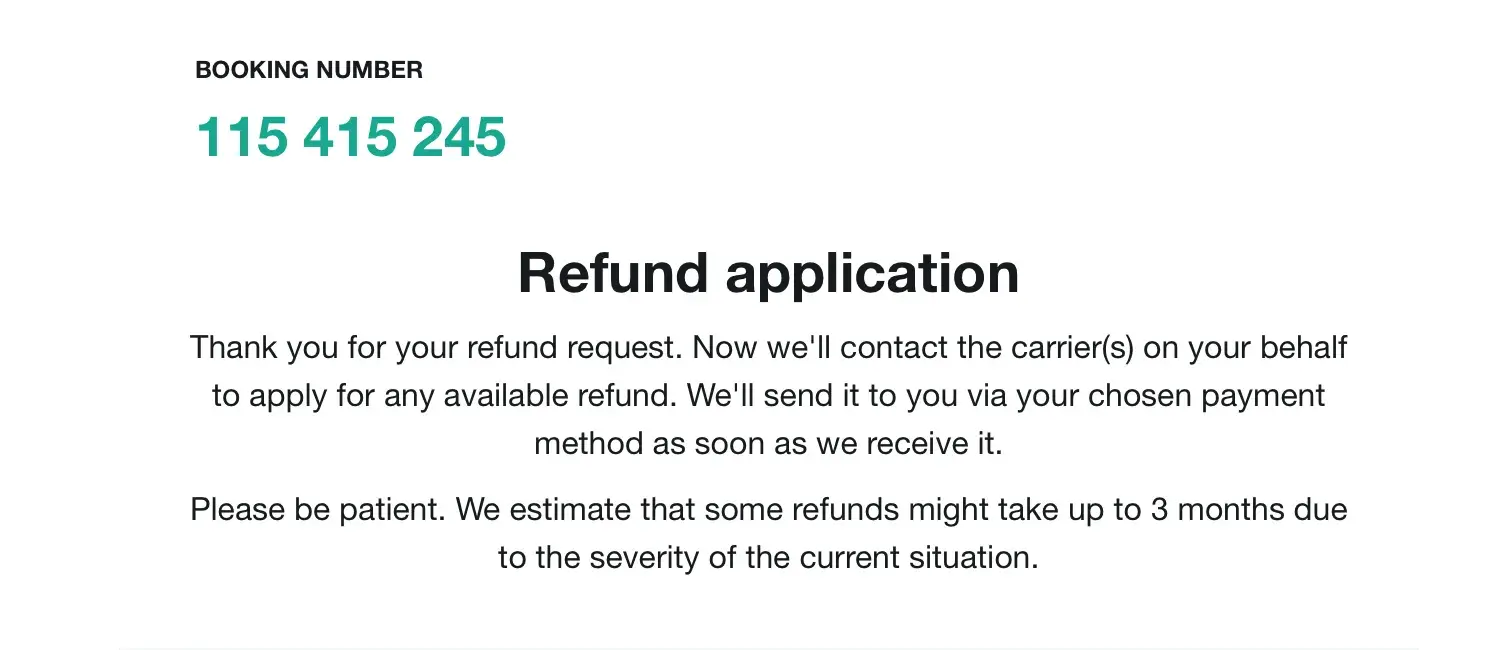 On May 20, I have received an email from this travel agency reporting that my flight was cancelled and needed an urgent action. I decided to get a full refund of the amount I paid for the fare and applied for this the next day. I then received a confirmation email that the request was received and they will start liaising with the airlines. I was reminded that it can take up to three months for this process to take place.