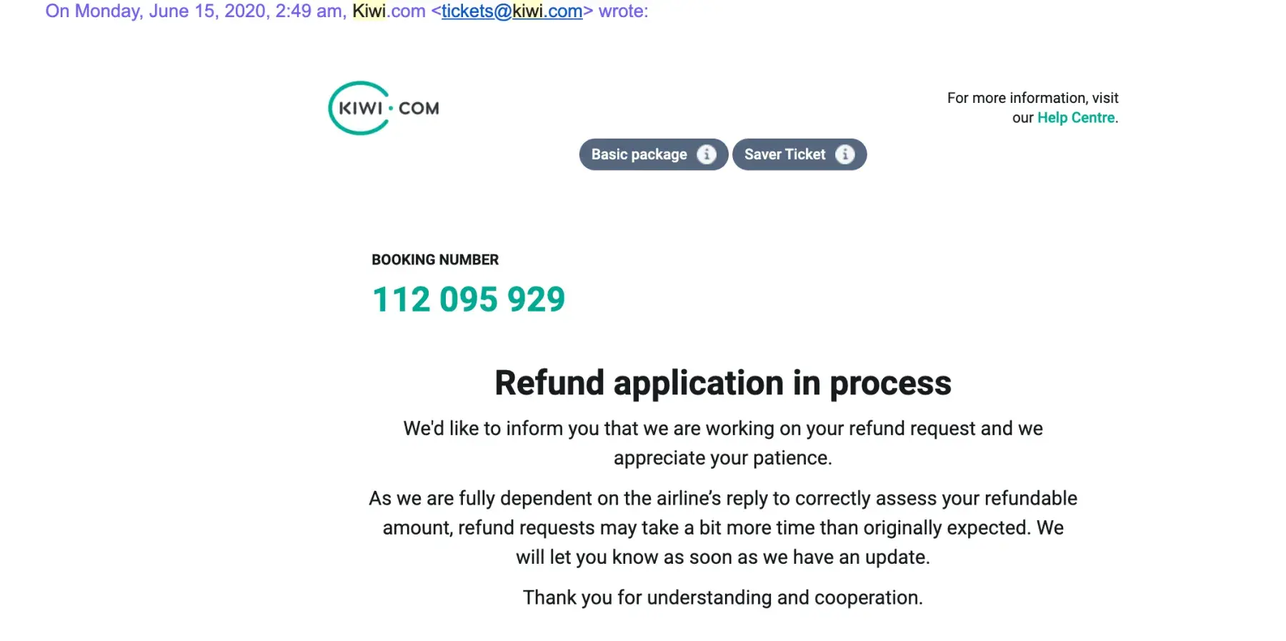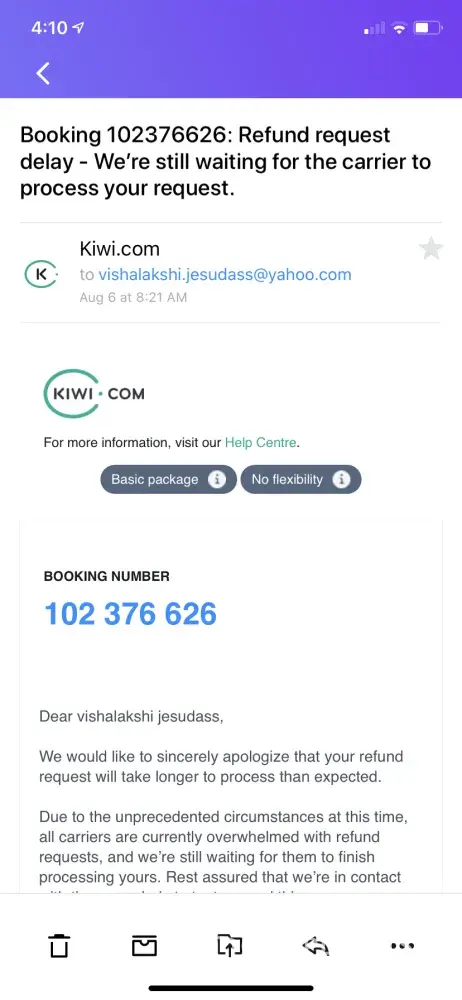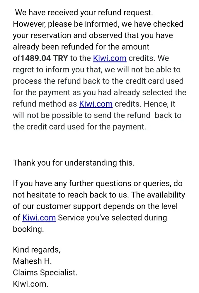 3. Airline refunds kiwi.com but kiwi does not refund passenger (me), also known as cash preservation 😡