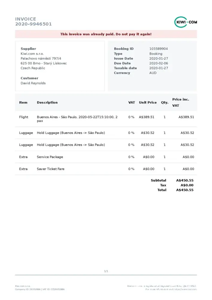 1. Booked a flight through kiwi.com and paid for it.