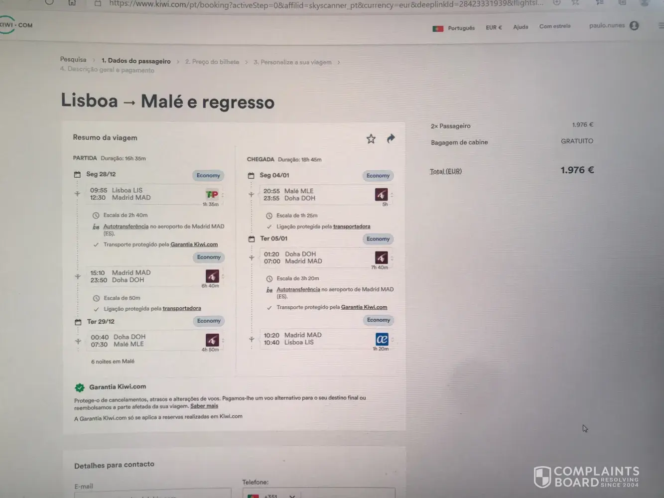 Yesterday, after all this confusion, kiwi send me a flight proposal for the entire route, that is, for my final destination, again including a tap flight, with similar schedules, for a similar amount, … but as I had already paid via iberia, there was nothing to be done,