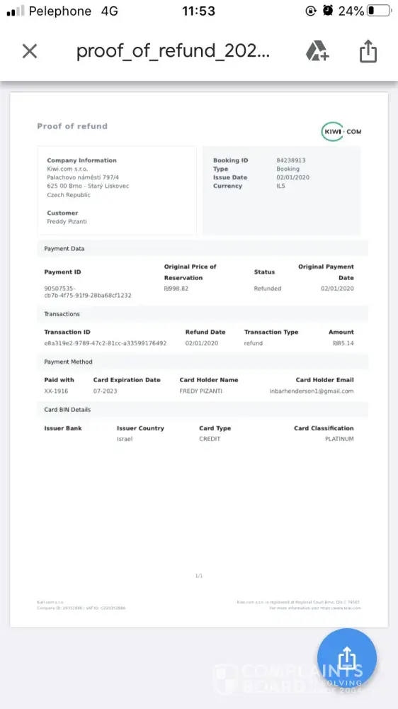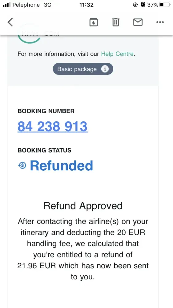 Talked to some useless woman on the phone... Won't answer the queries about the receipt containing a card number that doesn't match mine after talking to the airline itself about a taxes refund i was entitled to through them as i didn't go... Can't receive that taxes refund due to kiwi giving the wrong card number. Sadly to say won't be using this website or app ever again.. Very disappointed... Disgusted beyond belief... Paying useless staff that typed in my card number wrong twice on receipts... Very disappointed... Used to be brilliant before but sadly not anymore.