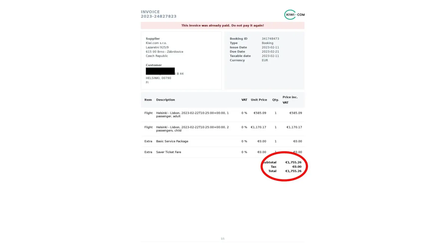 Booking reference: [protected]. Flight delay compensation from Kiwi.com