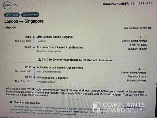 We are a family of four consisting of two young children purchasing as flight from London to Singapore using Etihad by using kiwi.com. On the day of our flight the most horrified moment for traveling with children happens, our name is not in the flight we booked! The depressing moment is best explain in time capsule below:
