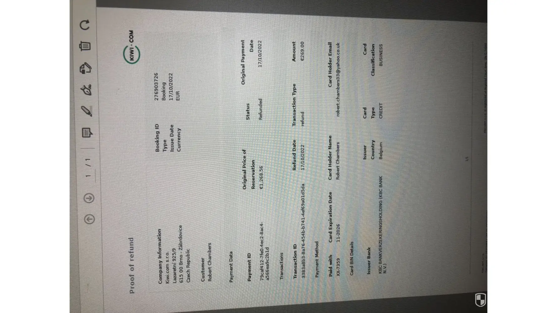 I bought airline ticket from Kiwi.com. Then at the covid time first the flight was cancelled then I got refund voucher from the airlines then I again tried to buy tickets using that voucher. Then again because of covid I didn't able to fly. Then I submitted for refund to KIWI.com with no resposne about an year. Then I contacted the airlines and airlines made the refund and send me document that they made the refund. The voucher airlines sent me it was isssued to Jade Tours. They said Though I Bought it Kiwi.com but it was Jade Tours stock. Can I get any help on this matter Please. I am attaching the copy of refund voucher and proof of payment to Kiwi.com.