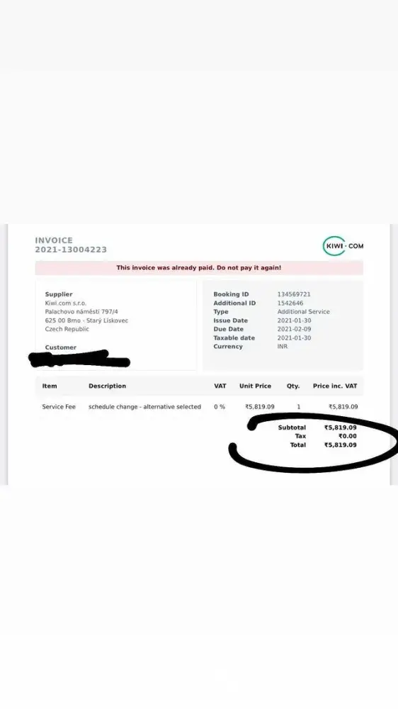 My flight was changed 26 hours and kiwi want me to buy a new ticket