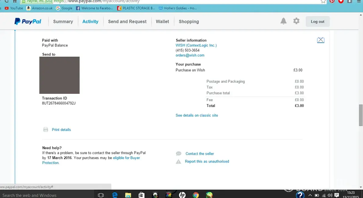 I received a letter this morning from a company named Klarna, claiming that I owe them money for an Item purchased via WISH and that I payed for last month via paypal. It states on the letter, "We didn't receive payment before the due date on your last statement." 1) I never did not receive any emails or letters before this one, So I had no prior statement. 2) I'd already paid for the item and have the paypal transaction to prove so. 3) They're threatening to add additional fees to something I've already paid for, If I don't pay for it AGAIN by Nov 25th 2015. I don't understand why I have received this letter or what to do about it. I have emailed Klarna customer explaining that this is a mistake, as I have already paid for my item and I have not received a reply. I have attached the transaction statement for the payment and covered my details for security reasons.