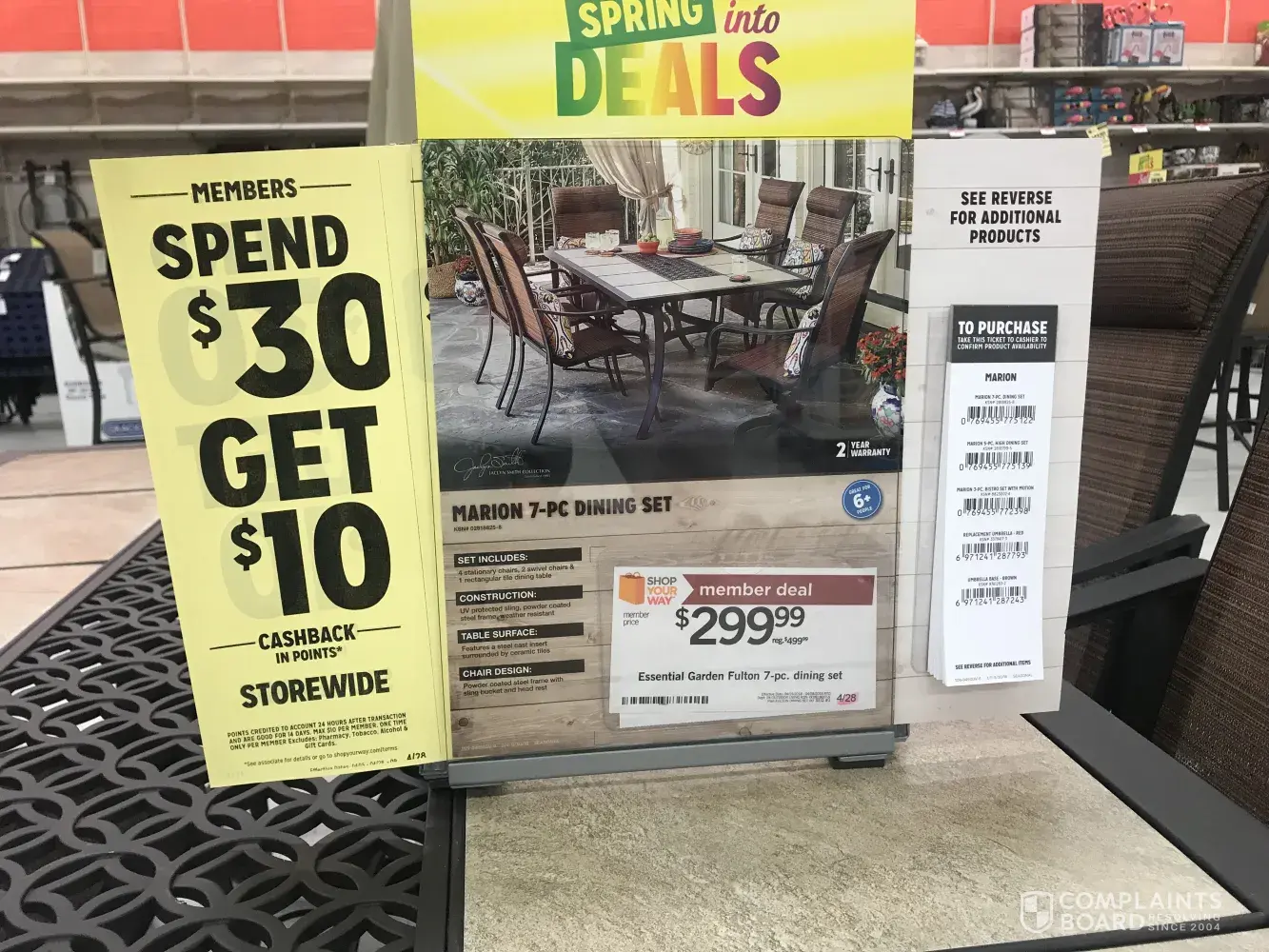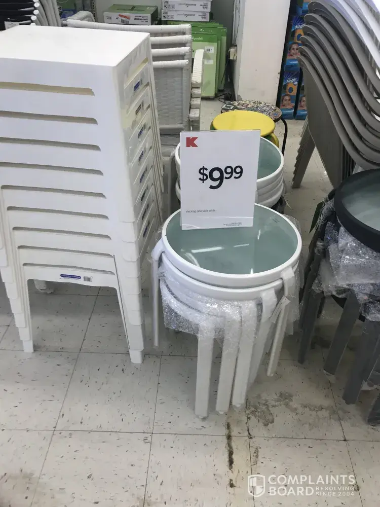 I went into my Kmart store 3 days ago and saw a patio set on sale for $299. I asked an employee and she confirmed that was the price. Came back today and they said ‘nope. It's 499. That's the price' I was stared at like I was an idiot for being confused by the advertising. I even showed them the picture of the display and they just shrugged. Awful service. If they would have even offered something, like a discount for troubles, I may have actually said yes. Instead I just got glared at and treated like I put the sign there. Horrible experience; I never want I step foot in another Kmart because that made me feel incredibly terrible. Never have I treated anyone else with that sort of general annoyance.