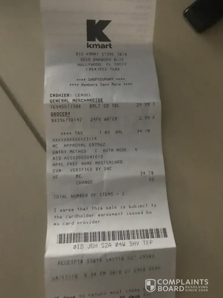 Needless to say: past my reimbursement - Kmart will never have my business, again.