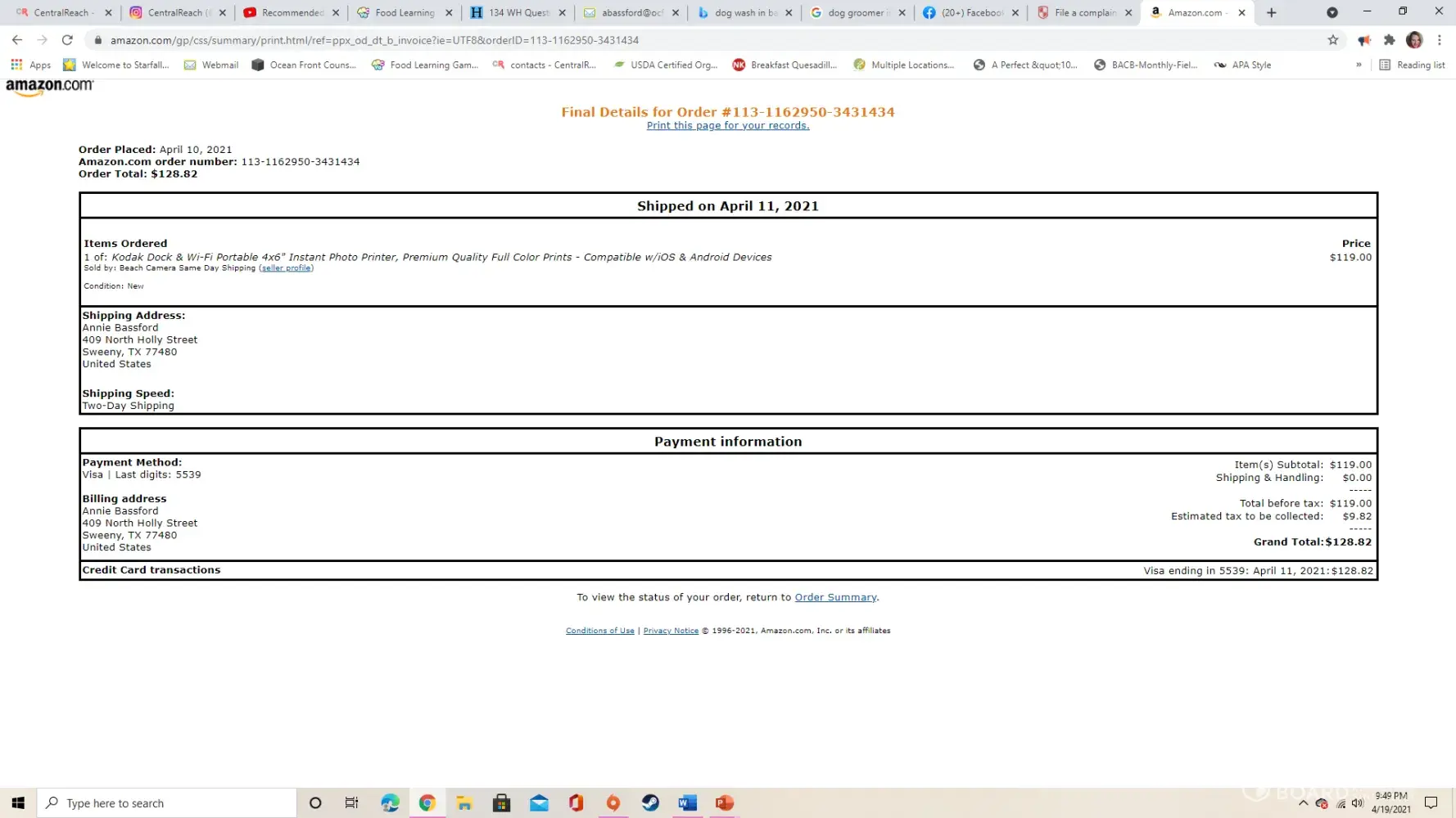 I ordered the printer on Apr 10th, 2021 for $128.82. I reserved the product on Apr 15th, 2021. The first time I used the printer the ink papers came out where the printed photo was supposed to come out of. On my phone there was a message to change the ink cartridge. The paper tray and paper were installed as the instructions indicated but the printer was not threading the paper through. I had to go online and order another ink cartridge to see if it would work. On Apr 19th I got the new ink cartridge and installed it correctly. I put the paper tray with paper in correctly as well. The printer still would not thread the paper but the ink did not come out this time. I was not able to print any pictures. I am requesting a replacement or refund as this product was defective. My phone number is [protected].