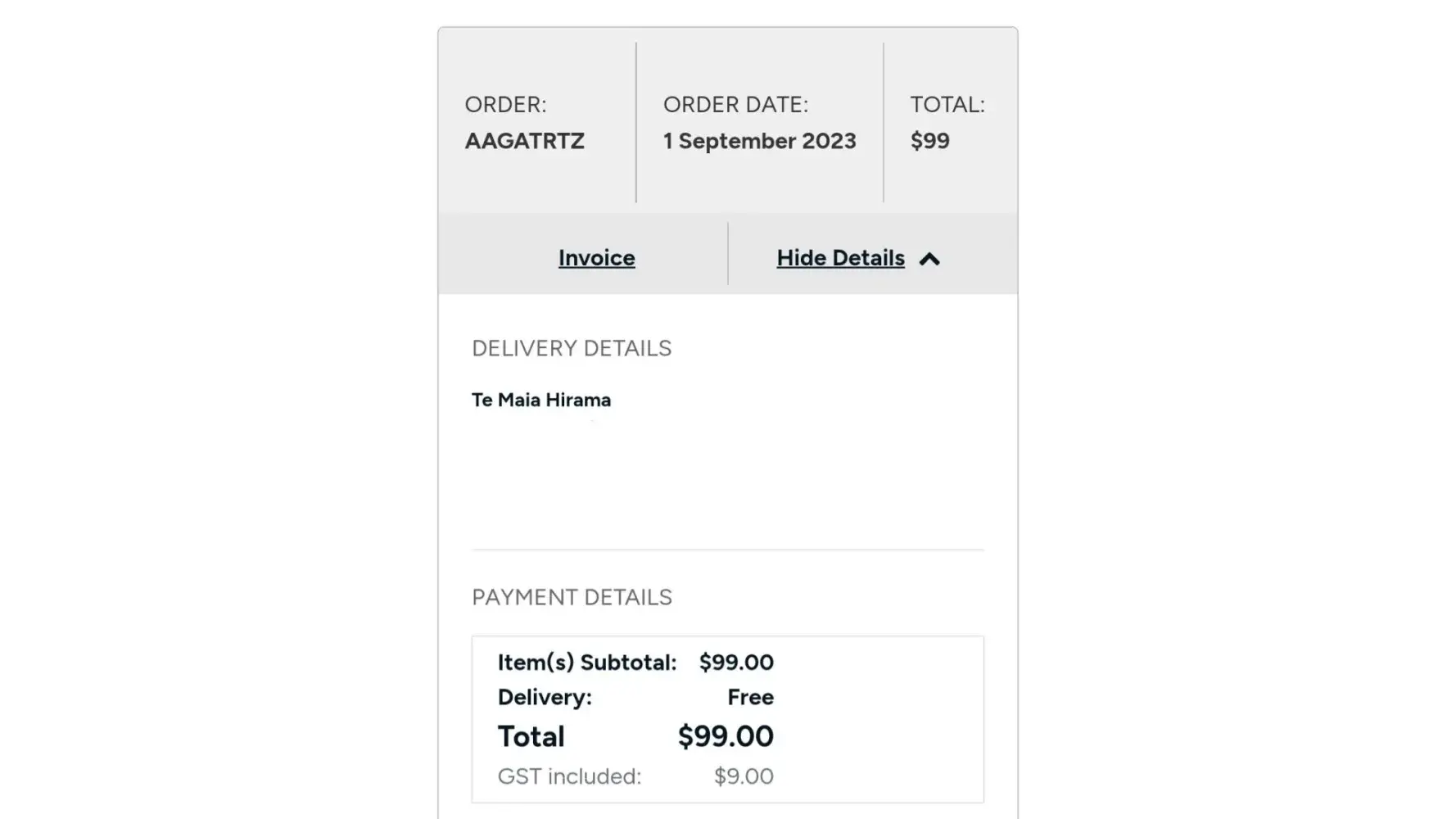Claimed loss: $99.00 AUD